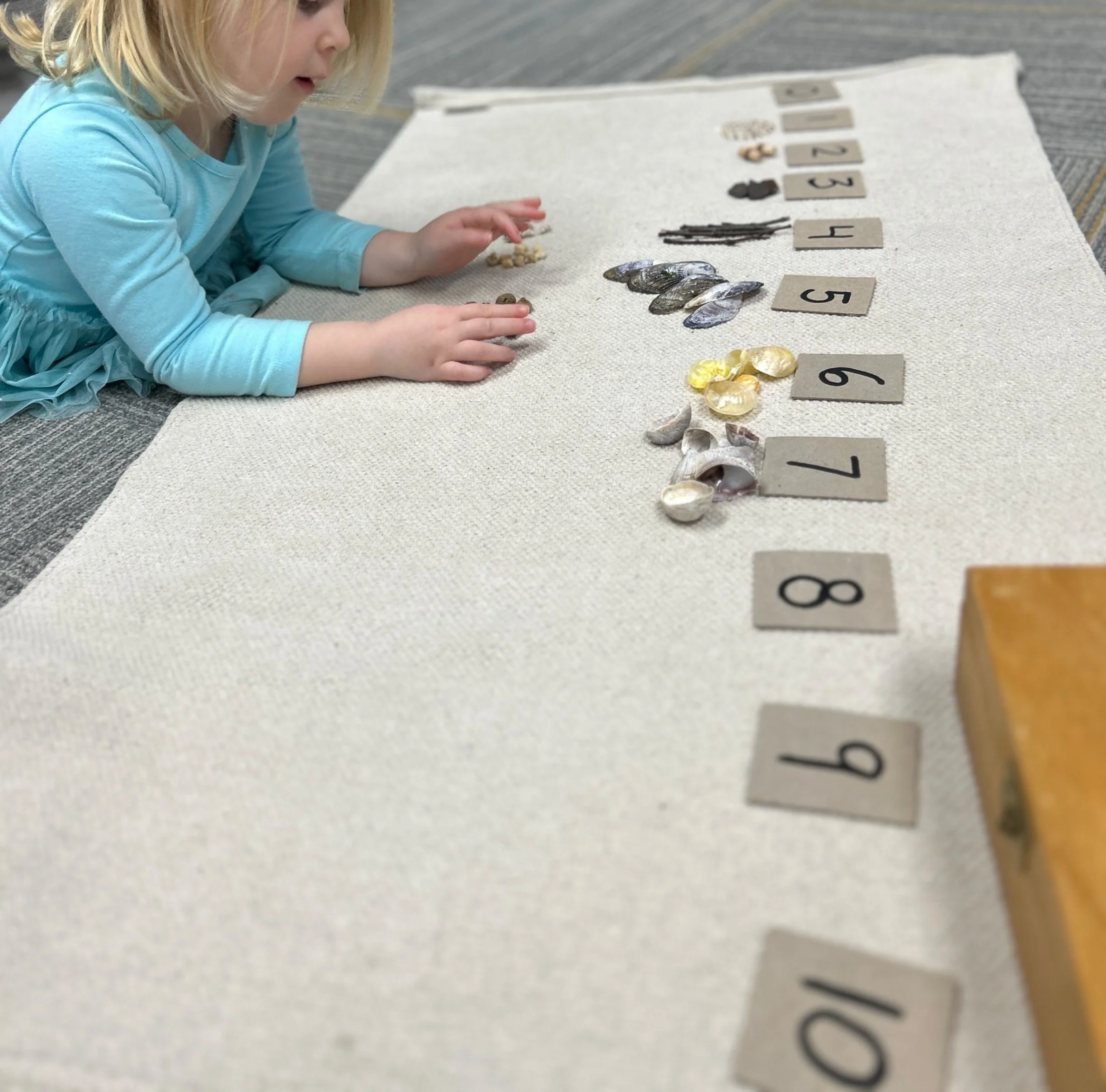 Nature offers children the opportunity to explore mathematical concepts through the world around them. Activities such as counting leaves and sorting or organizing objects into patterns help children practice 1:1 correspondence, counting, and ordering. Exploring geometric forms in natural structures, such as the symmetry in flowers or the spirals in shells, strengthens spatial awareness and an understanding of geometry. These activities deepen children's connection to the natural world while fostering a concrete understanding of math and its real-world applications, promoting critical thinking and problem-solving skills.